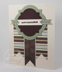 I can't even believe I'm showing this card for the world to see. At first glance, it looks OK, right? Yeah, not so fast. I made one huge mistake, so let's consider this post a public service announcement of sorts. Don't use glue under taffeta ribbon. If you didn't notice before, I'm sure that you can now see the line of glue under the ribbon on this card. Um, whoops. Here's the best part...the only reason I put the ribbon there was to cover up the tops of the striped banners that were sticking out from behind the green card stock. A mistake on top of a mistake. Nice.